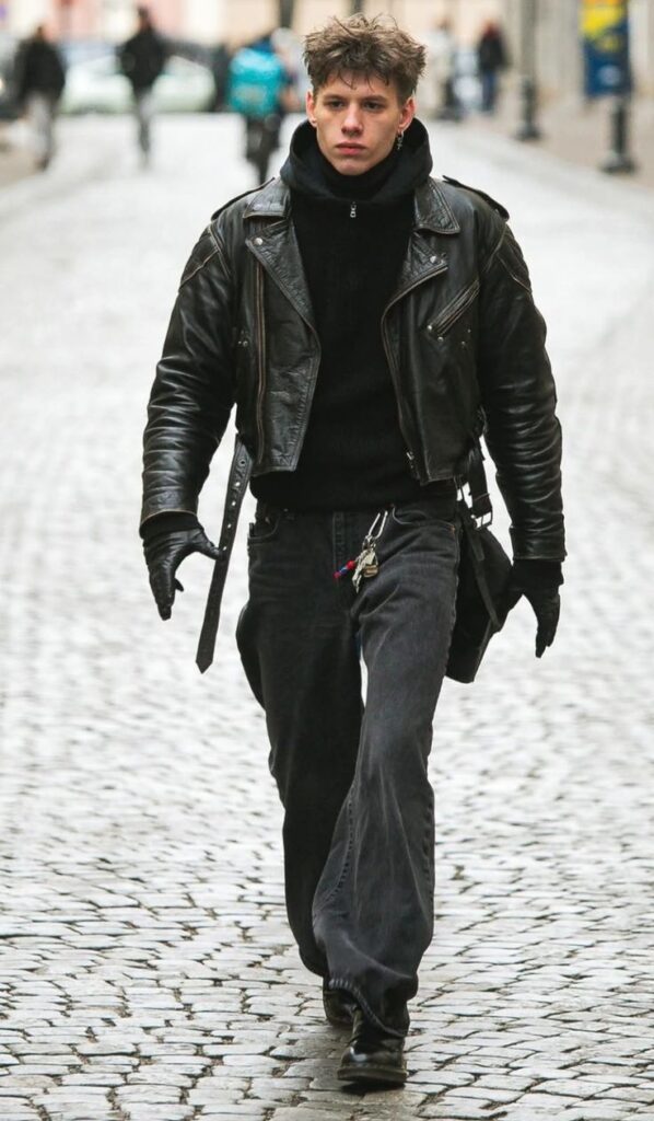Casual Chic with Adidas Sneakers & a Brown Leather Jacket